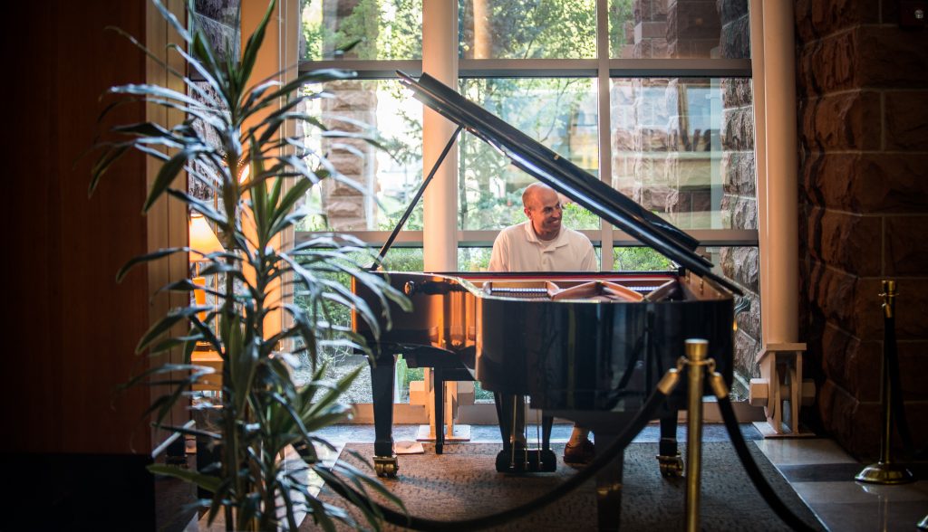 In 2018 he collaborated with violinist John Knudson to publish an album of original compositions entitled “Finding Peace” in Fall of 2018. John spent 18 years on the east coast performing with many symphonies as well as backing up hundreds of famous rock and pop bands, including Bon Jovi, Bill Joel, Aretha Franklin, and many more. John has performed at the Presidential Inauguration for President Bush, Clinton, and Obama.