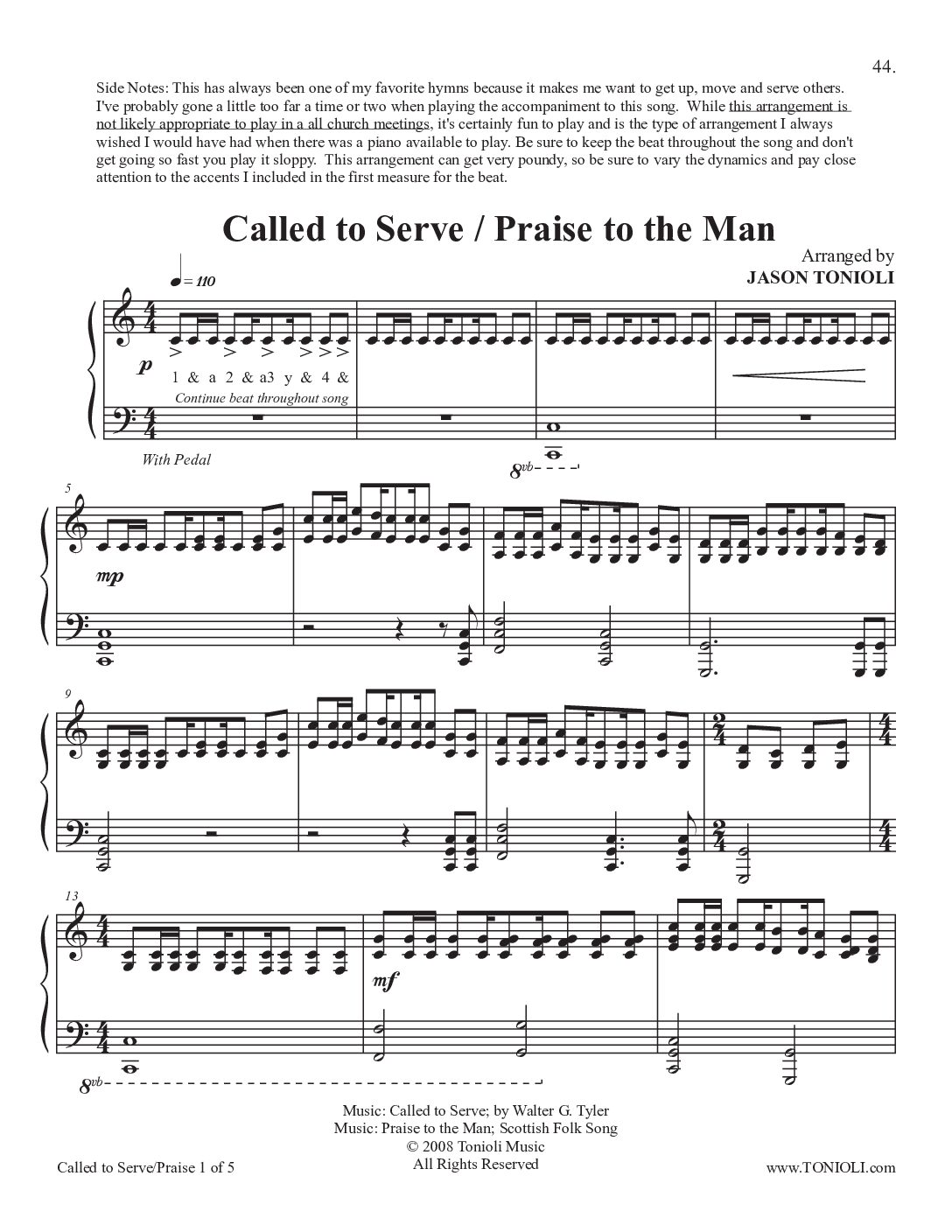 You can also find the Called to Serve/Praise to the Man piano sheet music in Jason’s book of hymns Sacred Piano Hymns II. Click here to download the full PDF book today.