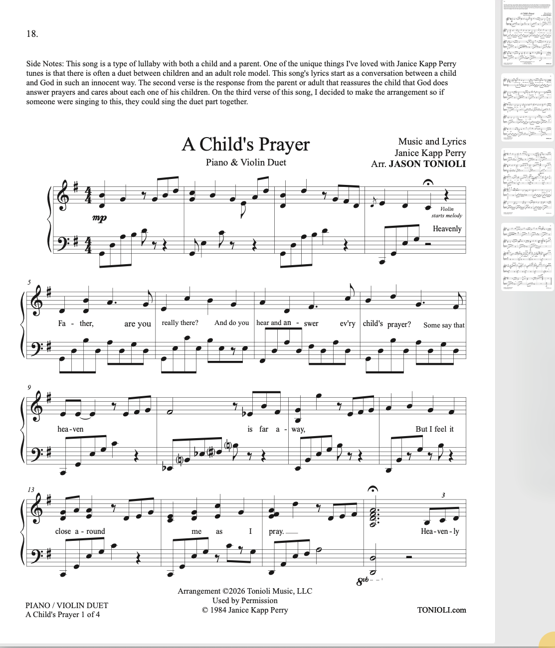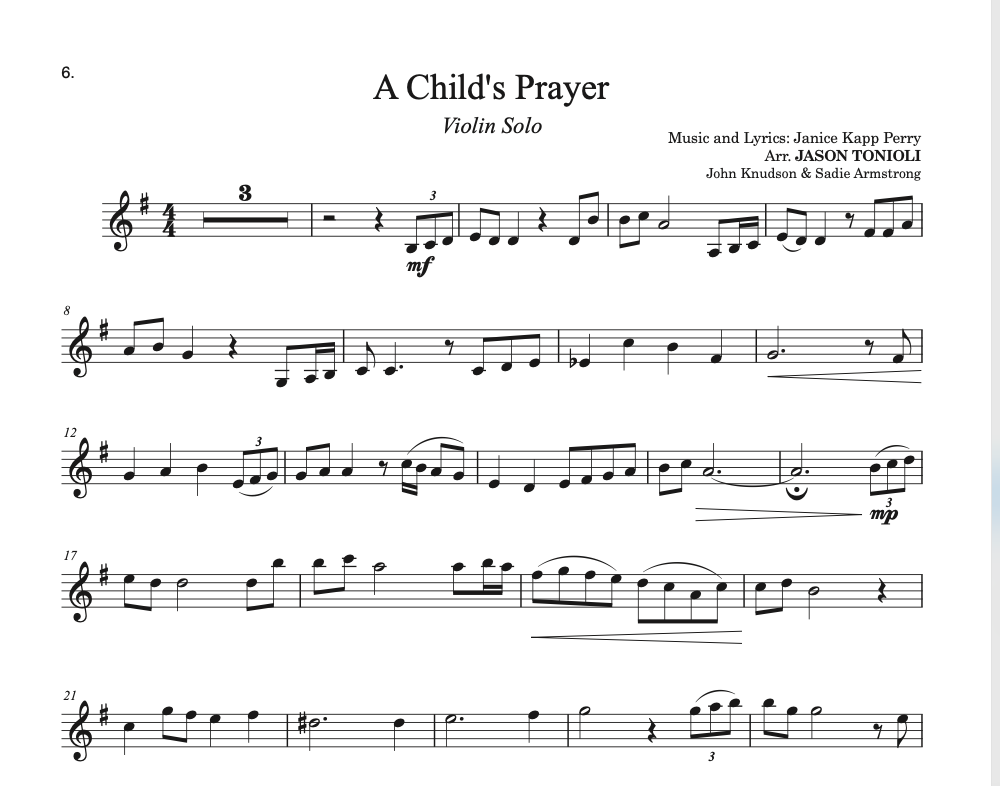 DUET – A Child’s Prayer (Violin & Piano Duet) – Janice Kapp Perry – SINGLE SONG DIGITAL PDF SHEET MUSIC$9.95