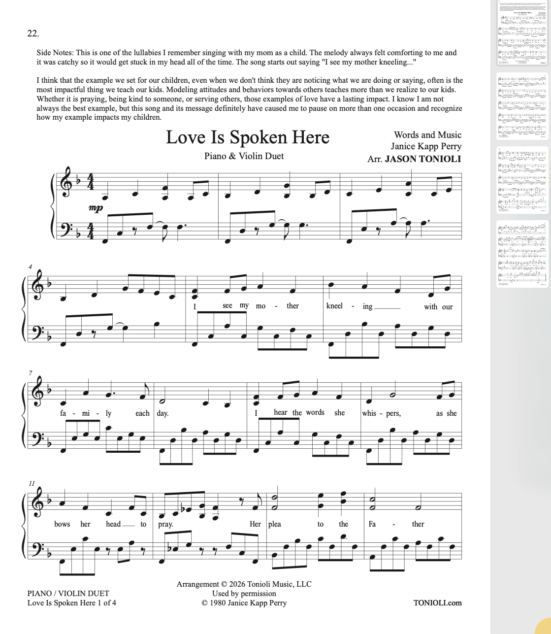 DUET – Love Is Spoken Here (Violin & Piano Duet) – Janice Kapp Perry – SINGLE SONG DIGITAL PDF SHEET MUSIC$9.95