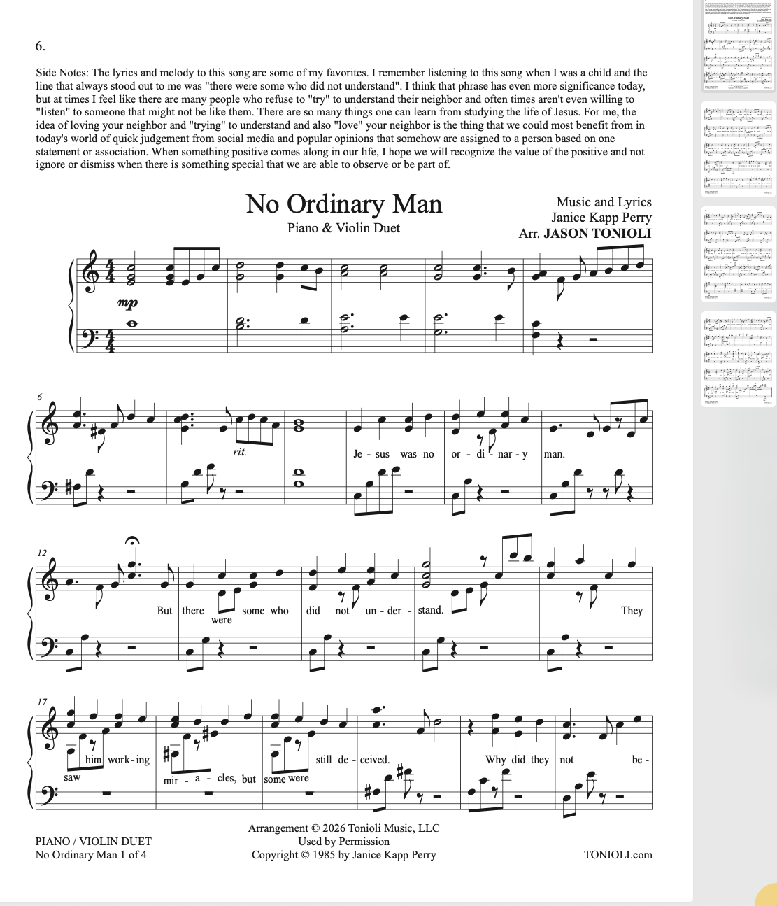 DUET – Jesus Was No Ordinary Man (Violin & Piano Duet) – Janie Kapp Perry – SINGLE SONG DIGITAL PDF SHEET MUSIC$9.95