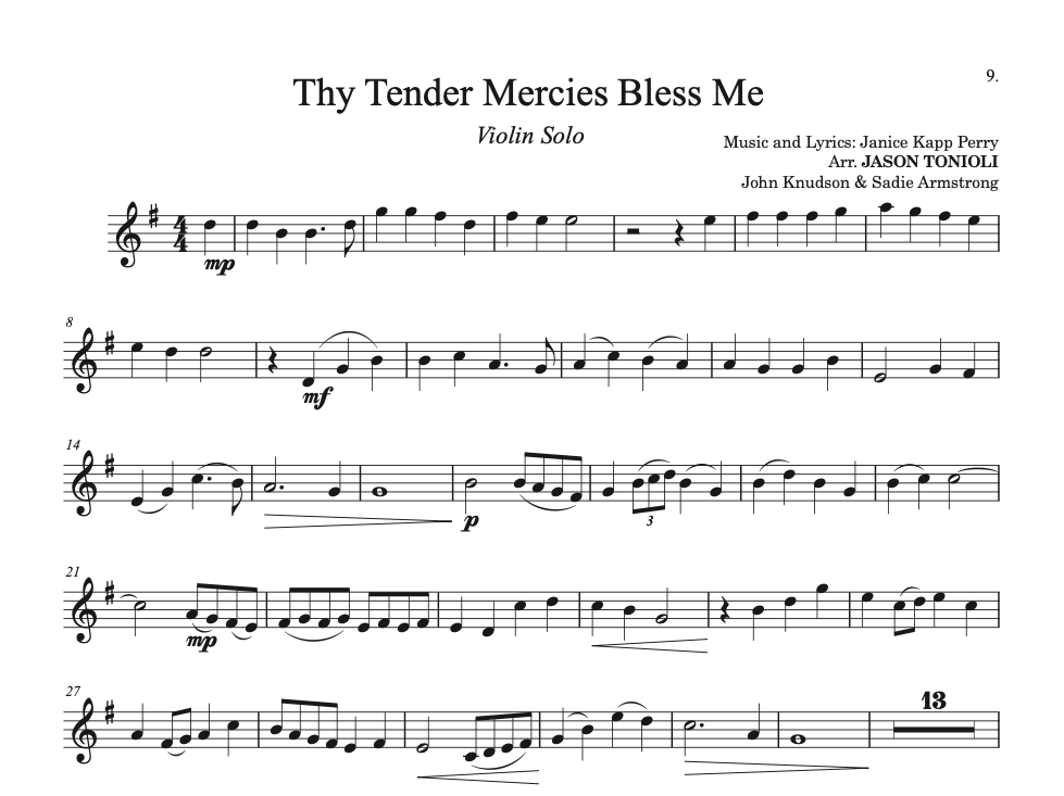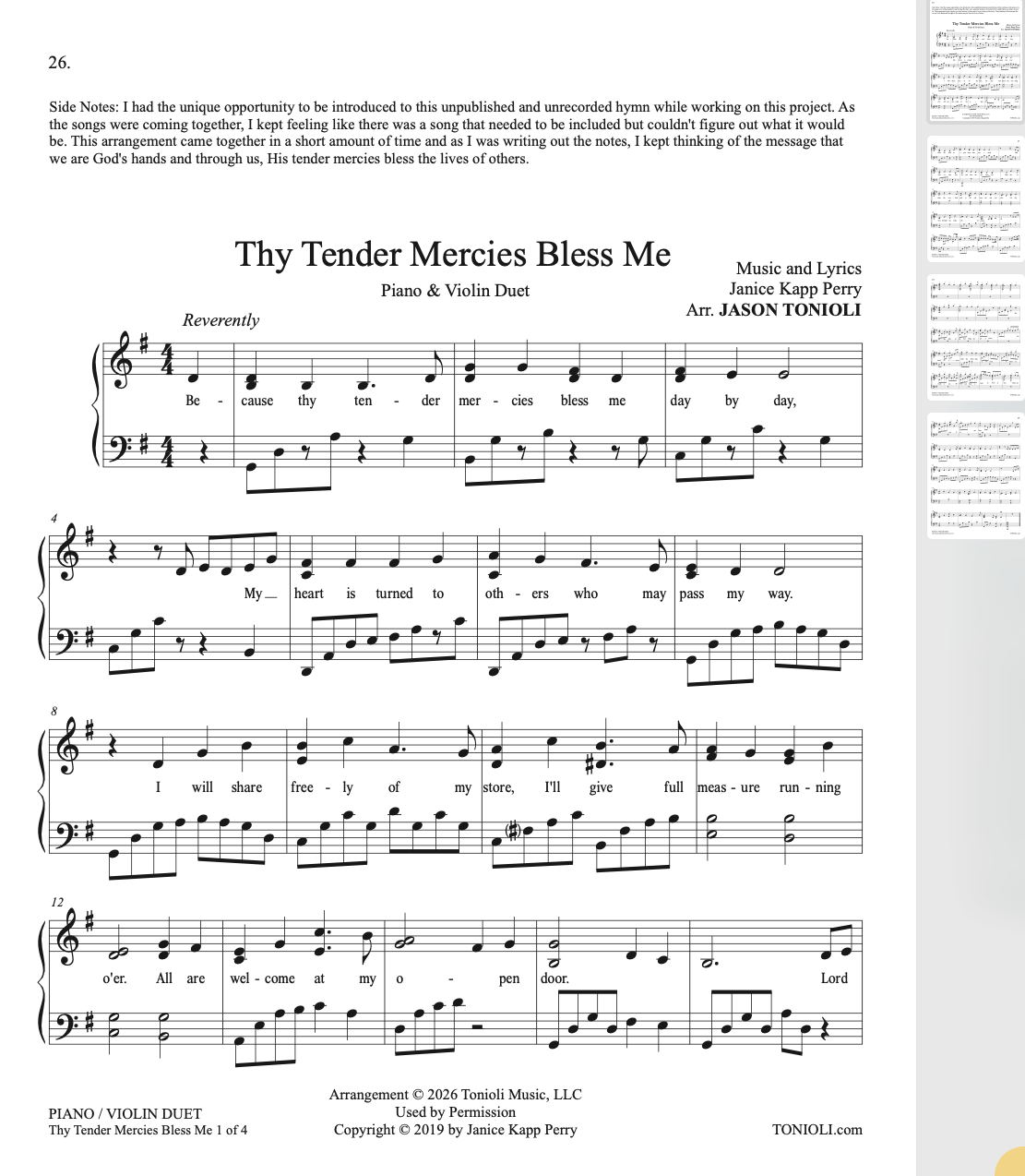 DUET – Thy Tender Mercies Bless Me (Violin & Piano Duet) – Janice Kapp Perry – SINGLE SONG DIGITAL PDF SHEET MUSIC$9.95