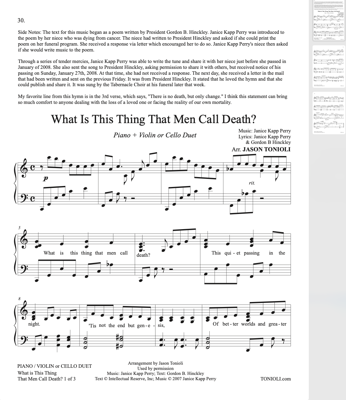 DUET – What is This Thing That Men Call Death (Violin & Piano Duet) – Janice Kapp Perry – SINGLE SONG DIGITAL PDF SHEET MUSIC$9.95