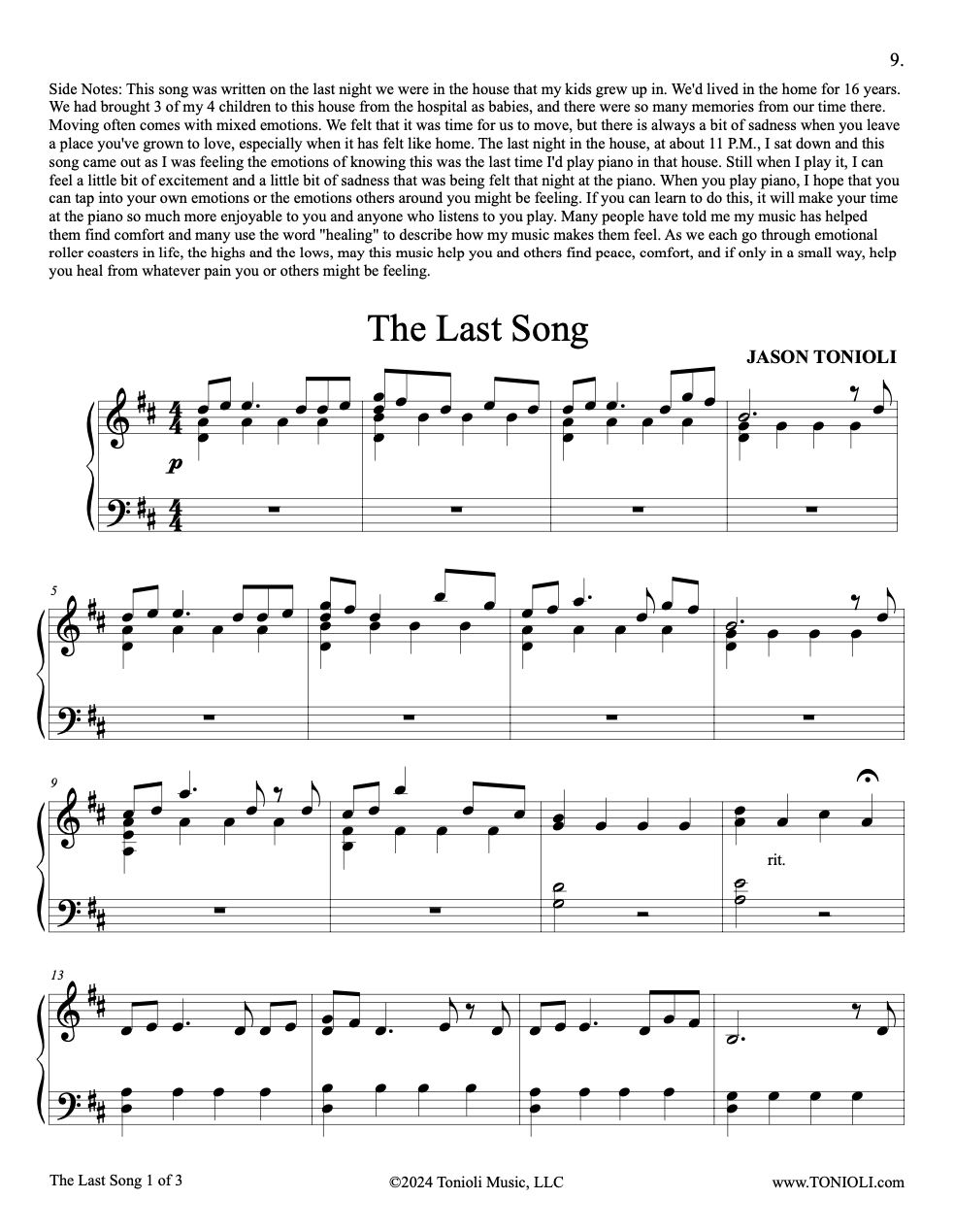 Years ago as a teenager trying to avoid practicing piano, I would have never believed that someday I would be writing and recording piano music, let alone have the music be the way that I was able to support my family. As I’ve written music over the years, I’ve tried to write what I felt during different life experiences. Songs come to me at various times and I’ve been lucky enough to have had the ability to write many of them down and then share them with others.