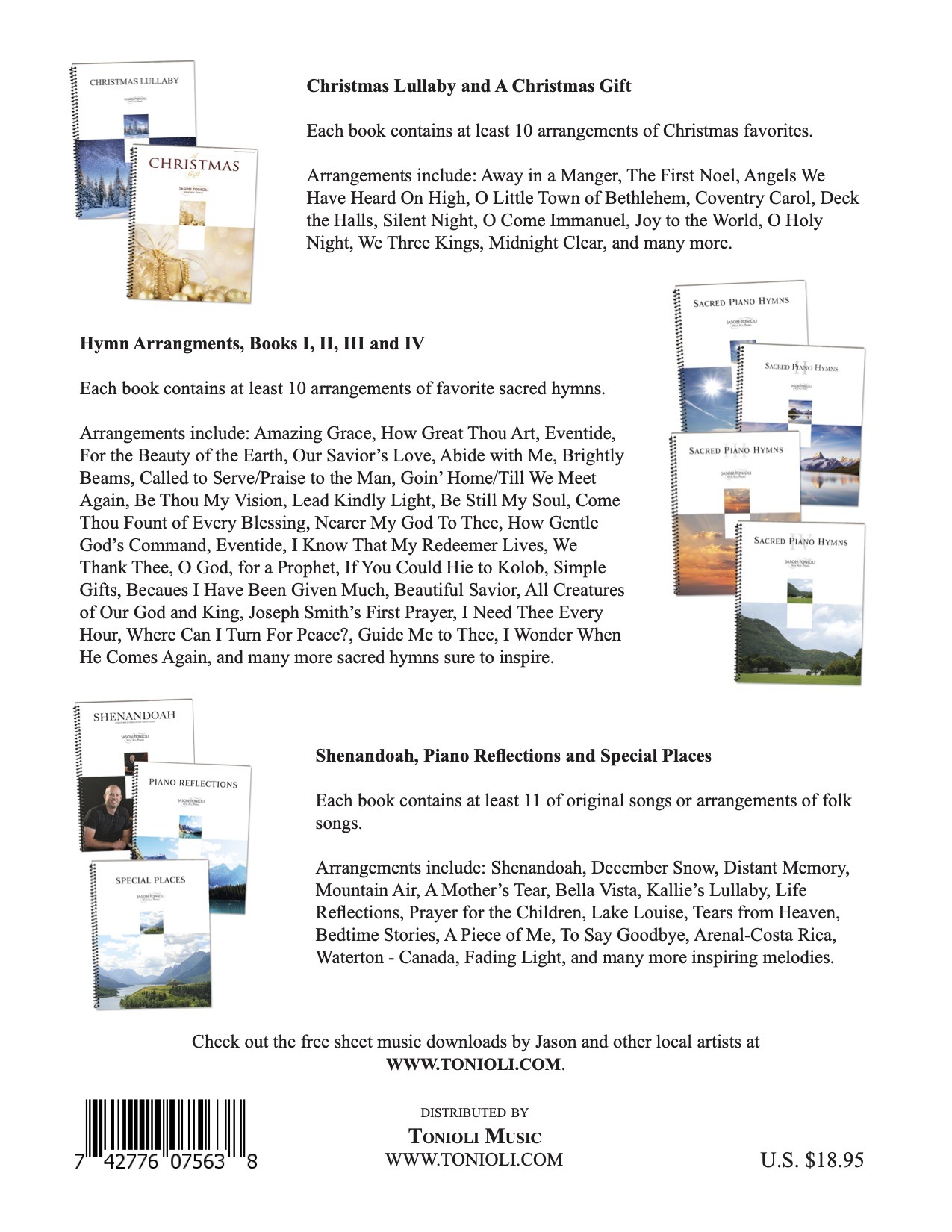 Sacred Piano Hymns 5 contains 10 new piano hymn arrangements from acclaimed Christian pianist Jason Tonioli. You’ll find the sheet music in this book perfect for piano recitals, sacrament services and other church meetings. Songs in this book are written for intermediate pianists though will also satisfy accomplished players and are meant to sound much harder than they are to play.
