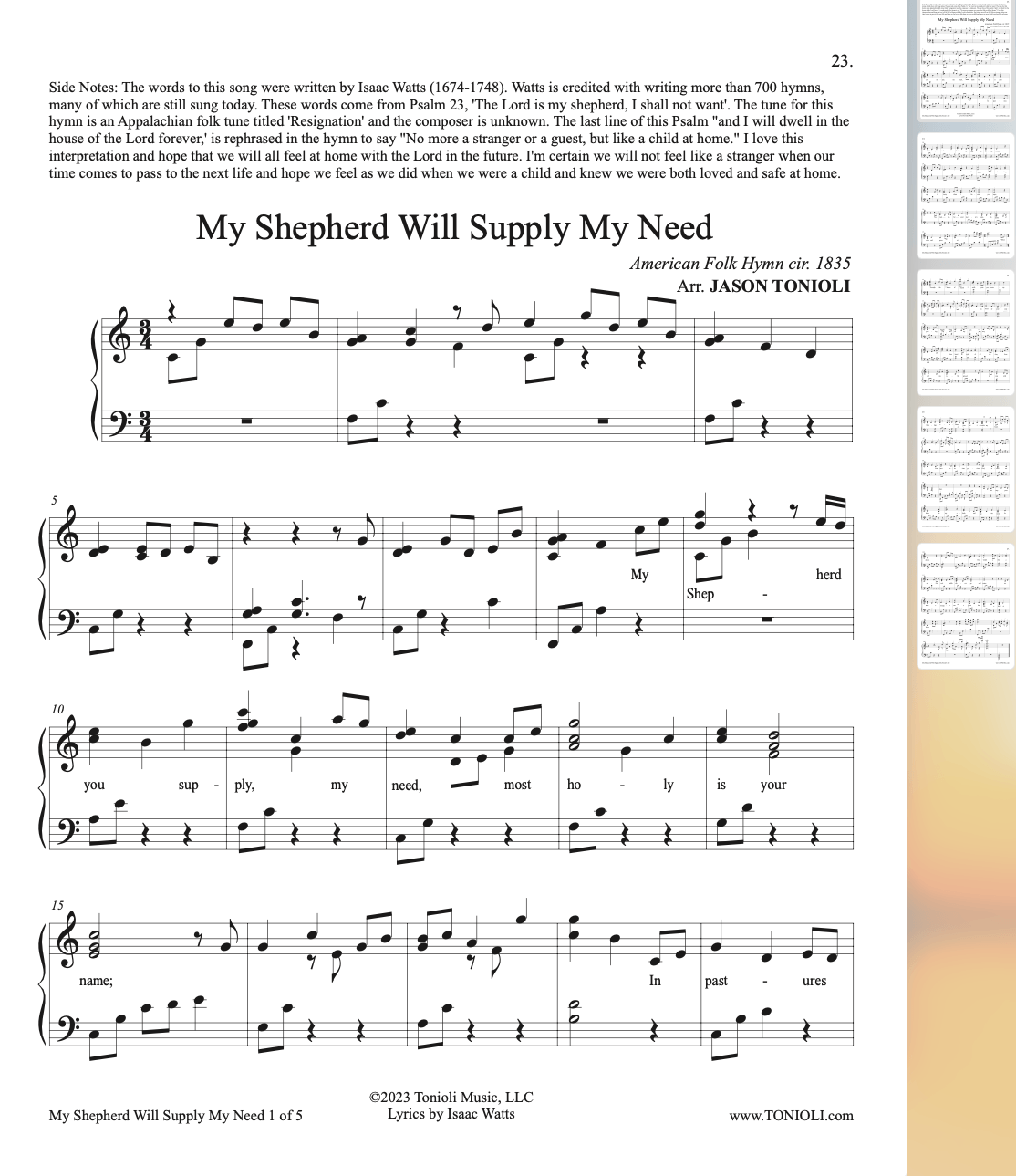 | My Shepherd Will Supply My Need (Piano Solo) | ![]() | $3.99 | |||||