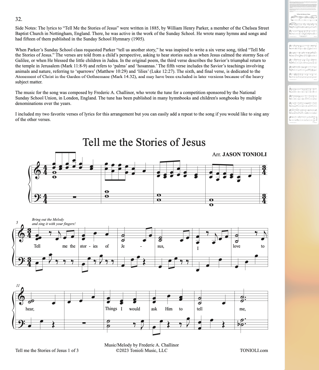 | Tell Me the Stories of Jesus (Intermediate Piano Solo) | ![]() | $3.99 | |||||