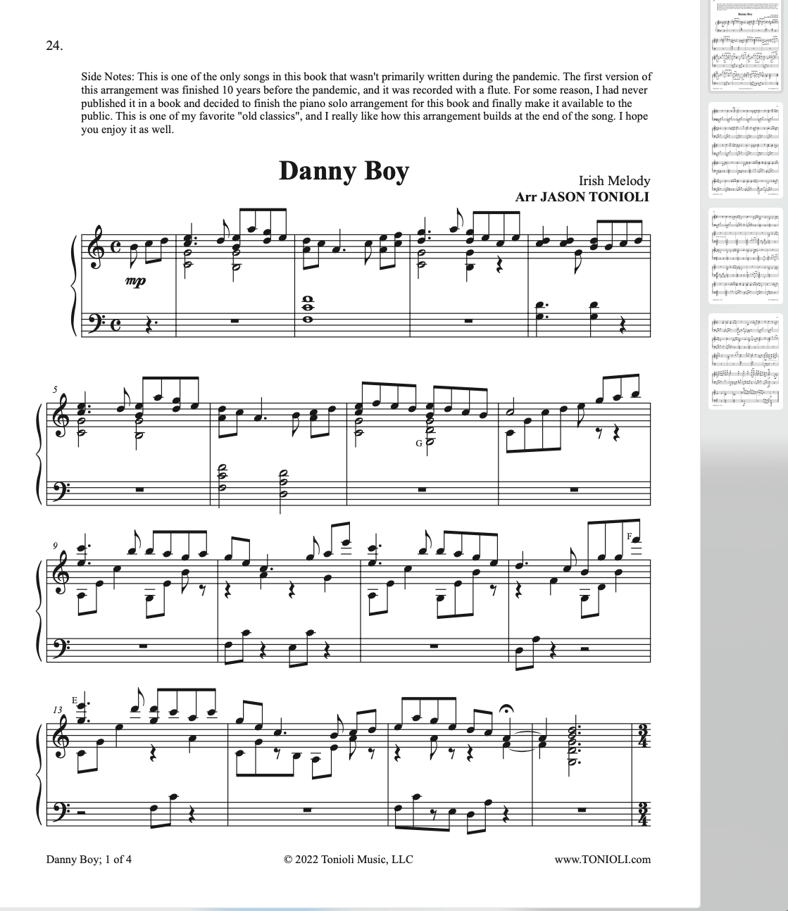 This is Jason’s 14th solo piano book and fourth piano book of original solos. This book of music contains 13 original piano solos and more than 50 pages of easy to intermediate piano solos. The music inside this piano book is perfect for playing as prelude or background music, or anytime you want to feel uplifted and moved by beautiful piano music. These piano songs will bring a calm and peaceful spirit into your life.