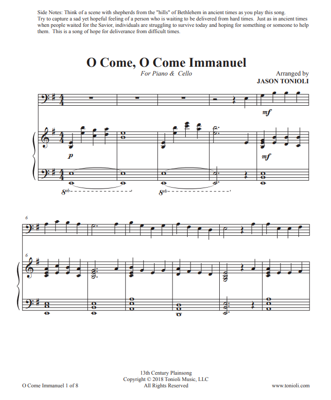 | O Come Emmanuel – Cello Solo & Piano (PDF Only, not in the book) |  |